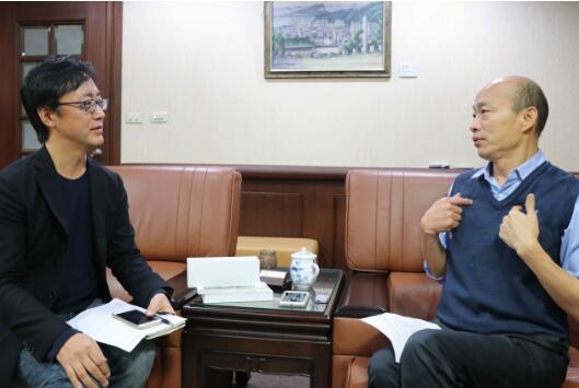 韩国瑜(右)接受采访