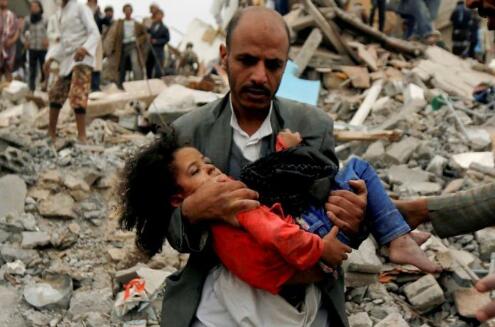 2017年,沙特联军空袭后被救出的儿童。路透社