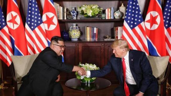 2018年6月12日,特朗普和金正恩在新加坡举行历史性首次会晤。两国领导人在会后签署联合声明,就“建立新的朝美关系”以及“构建朝鲜半岛持久稳定和平机制”达成一致。