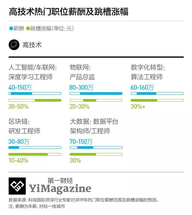 以人工智能、物联网、区块链以及大数据为代表的高端技术行业也保持着不错的薪酬涨幅。一方面人工智能、物联网技术的发展得到政策支持,另一方面,传统企业纷纷数字化转型,为高技术行业不断带来新机会。“制造业、零售业以及汽车行业的转型都需要大量技术加持,人工智能等新技术也在寻找新场景落地,所以高技术行业会保持增长。”张欣说。另外值得一提的还有芯片领域。据科锐国际报告显示,芯片产业得到政策扶持后将成为未来的重点产业之一。
