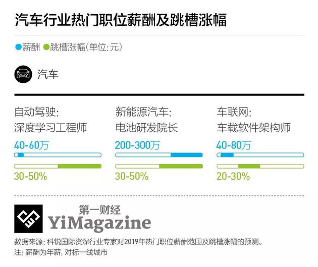不过汽车行业转型的成果在短时间内难以显现,因此无论是企业还是调研机构,对该行业2019年的薪酬涨幅预测依然保守。在行业下滑的背景下,传统整车制造领域中产品规划、物流规划、生产经济管理方面的人才将受到重视。
