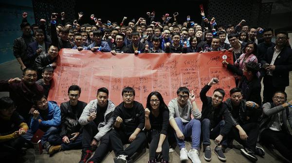 到达北京后,他们参观了锤子科技,晚上罗永浩自费4、5万包下望京一家铁板烧餐厅,200多个锤友相聚在一起,等待着老罗。那会北京的天气已经转凉,当罗永浩穿着一件短袖推门进来,现场爆发出了欢呼。