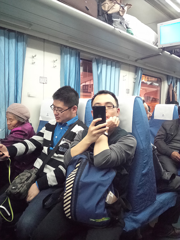 去看老罗演讲的火车上。锤友 韩凯强 图
