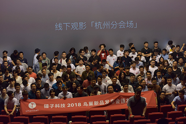 锤友组织的锤子新品发布会杭州线下观影活动。 受访者供图