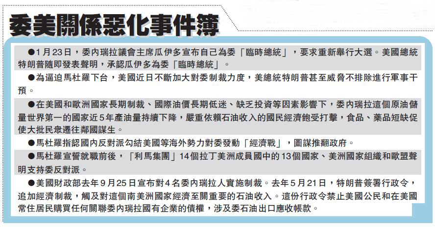 值得注意的是,中國外交部發言人耿爽昨天表示,中方反對對委內瑞拉進行軍事干預,反對任何導致委內瑞拉局勢緊張,甚至引發動亂的行為。