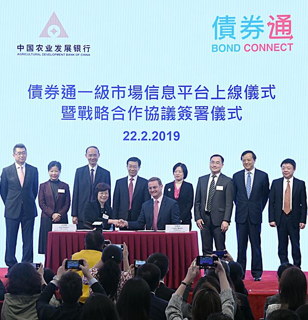 【香港商報网訊】記者姚一鶴、鍾穎琳報道:債券通一級市場信息平台上線儀式昨日於港交所(388)金融大會堂舉行,中國農業發展銀行是首家利用債券通一級市場信息平台進行信息披露的發行人。港交所行政總裁李小加表示,「債券通第一次代表中國內地債券市場在一級市場上與國際投資者見面」。