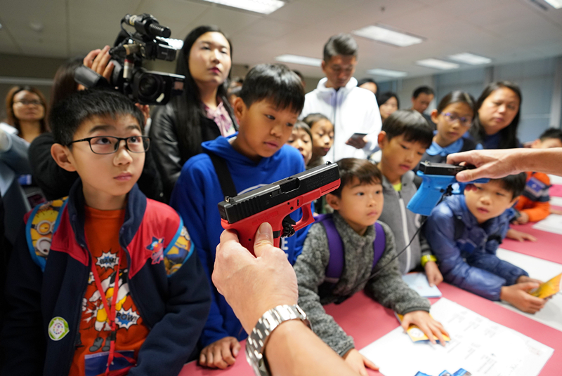 帶同兒子來參觀的趙先生說,希望讓兒子深入認識廉署,更重要的是認識廉潔的意義。其子則表示,能見到及拿起真槍很興奮,是第一次見到真槍。