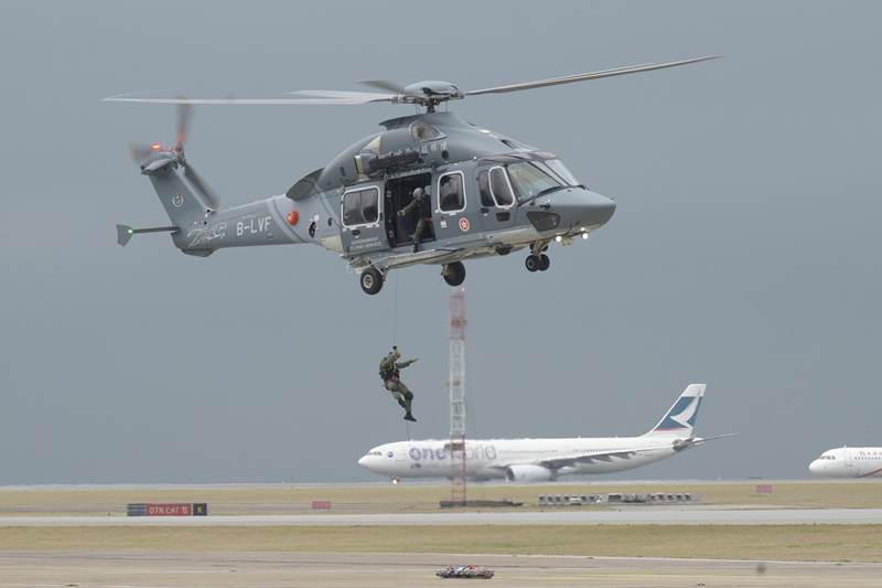 飛行服務隊昨早在香港國際機場西南端的總部向媒體展示H175「獵豹」機隊。總監陳志培表示,服務隊購入7架法國製H175「獵豹」直升機,以替代4部海豚及3部超級美洲豹直升機,其中6架新機已投入服務,而最後一架亦將於本年7至8月到港,相信今年內可完成更換機隊工作,之後將招標拍賣舊機。目前39名機師中已有19名接受有關培訓,以適應操縱新機。