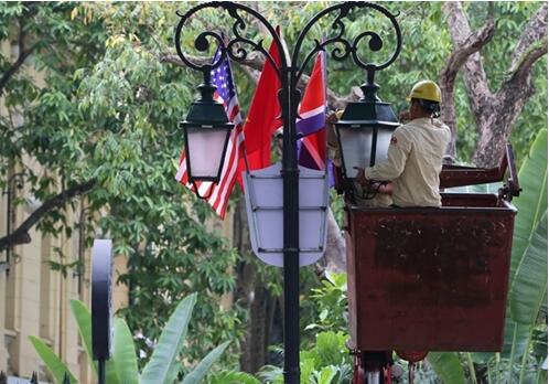 另据美联社2月24日报道,越南首都河内已在加强安保工作,为峰会做准备。有官员称,朝美领导人预计将在河内市中心的殖民时代建筑——政府宾馆举行会晤,备选地点为附近的京都酒店。这两处的街道都已经布置上了鲜花和朝鲜、美国及越南国旗。