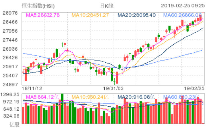 恒指高开0.55%上冲29000点 苹果概念领涨
