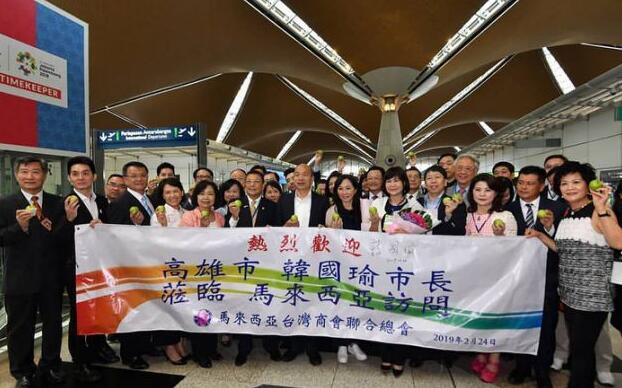 2月24日,台湾高雄市长韩国瑜率领高雄市行销团启程出访,下午首站抵达马来西亚,受到当地台商、侨胞等热烈欢迎,拉起欢迎横幅接机。据台湾《中国时报》报道,韩国瑜刚出境就受到台湾当局的压力,当日晚宴不见任何马来西亚官方代表出席。马来西亚台湾商会联合总会长林永昌证实此事,并说原安排吉隆坡市长阿敏诺丁与韩国瑜见面,但消息提早曝光,为避免造成纷扰,只好喊停。