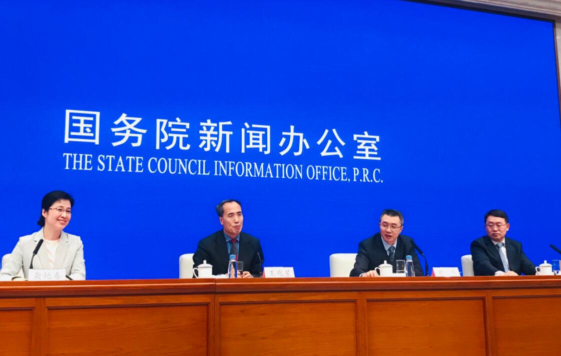 银保监会副主席王兆星(左2)、周亮(右2)、梁涛(右1)出席发布会