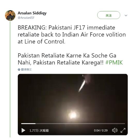 社交媒体消息,现场有人拍摄到克什米尔地区“枭龙”战机起飞的画面,并声称这些枭龙是用来拦截印度战机。