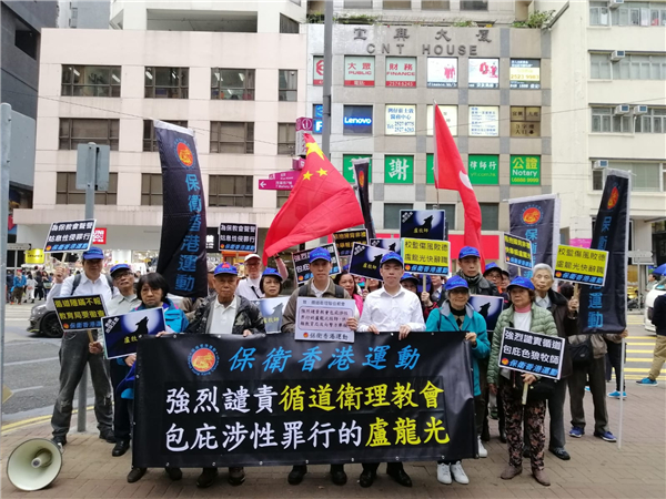 【香港商報网訊】團體「保衛香港運動」昨日舉行遊行集會及前往灣仔循道衛理聯合教會外請願,要求教會立即指示涉嫌性侵的盧龍光牧師向警署投案自首。團體指,若果他仍然死不悔改及不肯認罪,教會須立即主動向警方舉報盧龍光牧師的非禮罪行。召集人傅振中稱,為了釋除公眾對教會包庇罪惡的疑慮和負上辦學團體應有的責任,循道衛理聯合教會應該盡快向市民大眾公開他們對盧牧師性侵犯的調查報告,並盡快向教育局匯報該罪行。