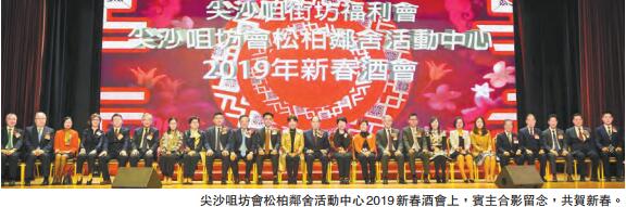 【香港商報网訊】記者郭天琪報道:尖沙咀街坊福利會暨松柏鄰舍活動中心2019新春酒會日前假尖沙咀會堂舉行,中聯辦九龍工作部副部長王小靈、立法會議員蔣麗芸、油尖旺民政事務專員蔡亮、香港天文台台長岑智明、油尖旺區議會主席葉傲冬、香港警務處油尖區指揮官何潤勝總警司等蒞臨主禮,當日有精彩的文藝演出,嘉賓獻唱、樂隊助興,氣氛熱烈。