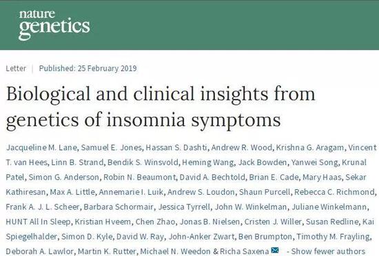 拿到初步结果后,考虑到参与者对失眠症状的自我描述可能不够准确,研究人员又分析了挪威一项有15000名参与者的调查结果,以及2200人储存在MGH合作伙伴生物银行(Partners Biobank)的数据。多个队列的重复让研究人员最后确认,有57个基因位点与不同频率的失眠相关。