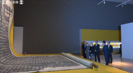 天皇夫妇参观了首次在日本公开展出的颜真卿真迹《祭侄文稿》,还认真聆听工作人员讲解唐玄宗《纪泰山铭》。