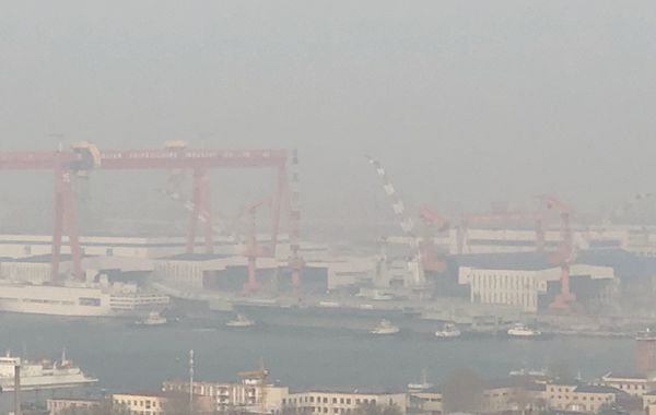 微博網友@熱武器時代的愛情故事 在大連拍攝的國產航母照片。