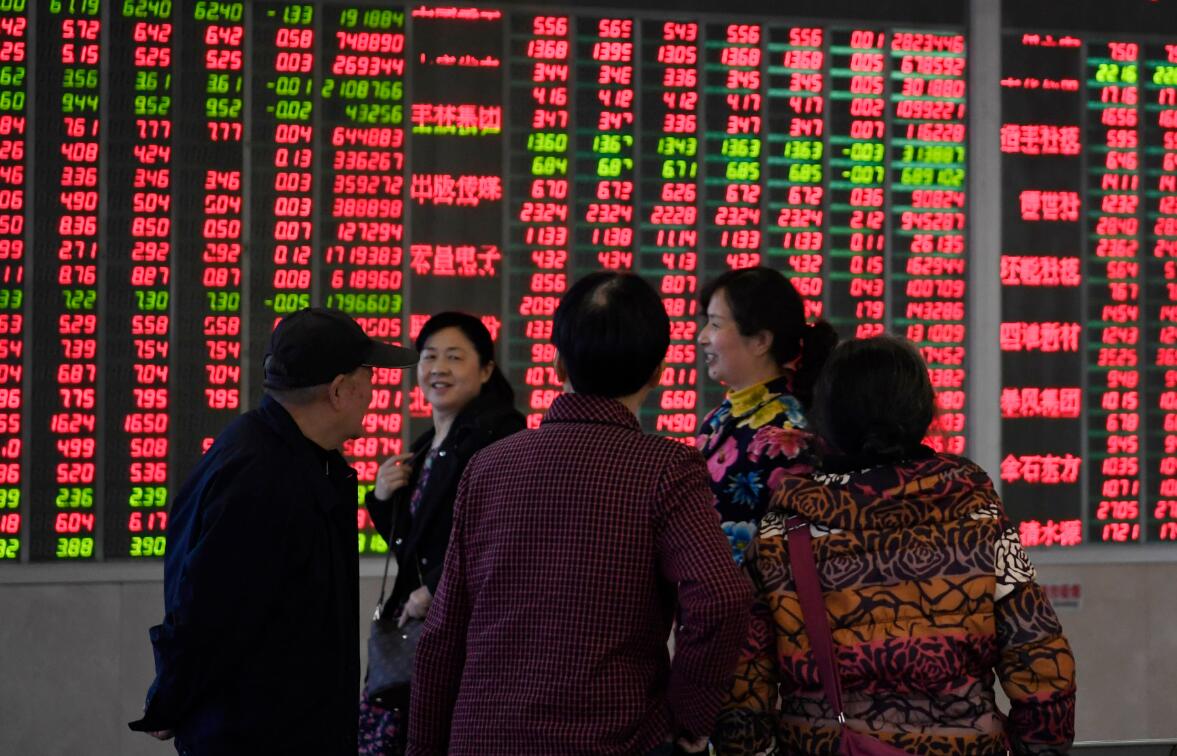 昨日,成都某證券營業廳內的股民笑談股指上揚。中新社