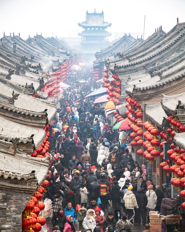 今年春節黃金周多項消費增長速度出現回落,圖為遊人在前門大街遊覽。新華社
