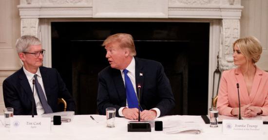 2018年初,苹果表示未来一年将为美国经济作出3500亿美元的贡献。去年晚些时候,库克参加了总统的首次国宴,在那几个月后,两人又共进了一顿晚餐。