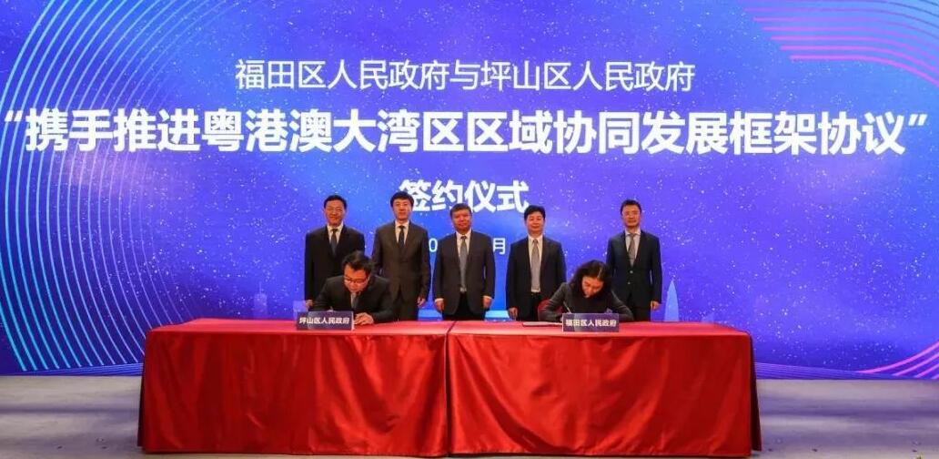 會上,福田區政府與坪山區政府簽署了「攜手推進粵港澳大灣區區域協同發展框架協議」,「協議」簽署後,福田、坪山兩區將秉持共商、共建、共享的原則,加強創新福田與創新坪山的攜手共進,以深港科技創新合作區和坪山高新區為依託,深化區域合作模式,創新合作體制機制,同時在產業發展、教育醫療、城市管理等多個方面展開深度合作。兩區還將攜手港澳和周邊地區,在更深層次、更大範圍內拓展科技創新腹地,完善科技創新鏈條,構建科技創新生態,合力打造粵港澳大灣區東部科技創新走廊。