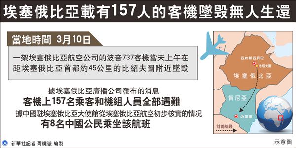 中國駐埃塞俄比亞大使館表示,中方已從埃航初步核實了上述情況,有8名中國公民乘坐該航班。目前,中國駐埃塞使館已啟動應急機制,正與埃塞政府、埃航保持密切溝通,核實情況,並將做好後續工作。