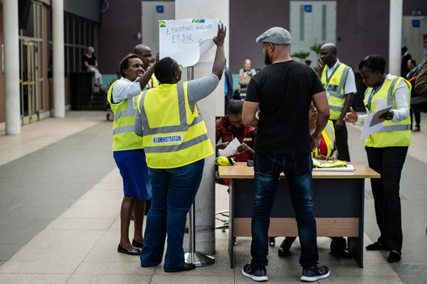 工作人員布置召集標識牌。 新華社