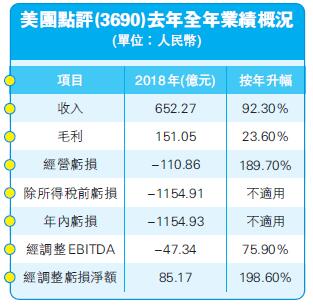 【香港商報網訊】外賣平台美團點評(3690)昨公布2018年第四季及年度業績報告。截至去年12月底,公司全年錄得652億元(人民幣,下同)收入,較上年度的339億增長92.3%;毛利則錄151億元,按年倒退約23%。雖然收入大增,公司總虧損卻錄1155億元,較上年度的190億元虧損大幅擴大。這也破了歷來港股上市公司全年虧損的紀錄。