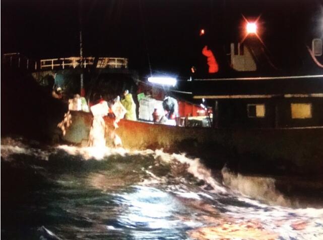 据报道,昨晚台中海巡队舰艇在台中港外29.5海里处发现1艘大陆籍渔船“越界”捕鱼,要求该船停船接受检查,大陆渔船拒绝登检直接离开,台巡防艇即强行登检,经登检确认船舱有渔获100公斤,台海巡人员将渔获抛入海里,并将船上35岁大陆籍男性船长等8人押返台中港队部码头。
