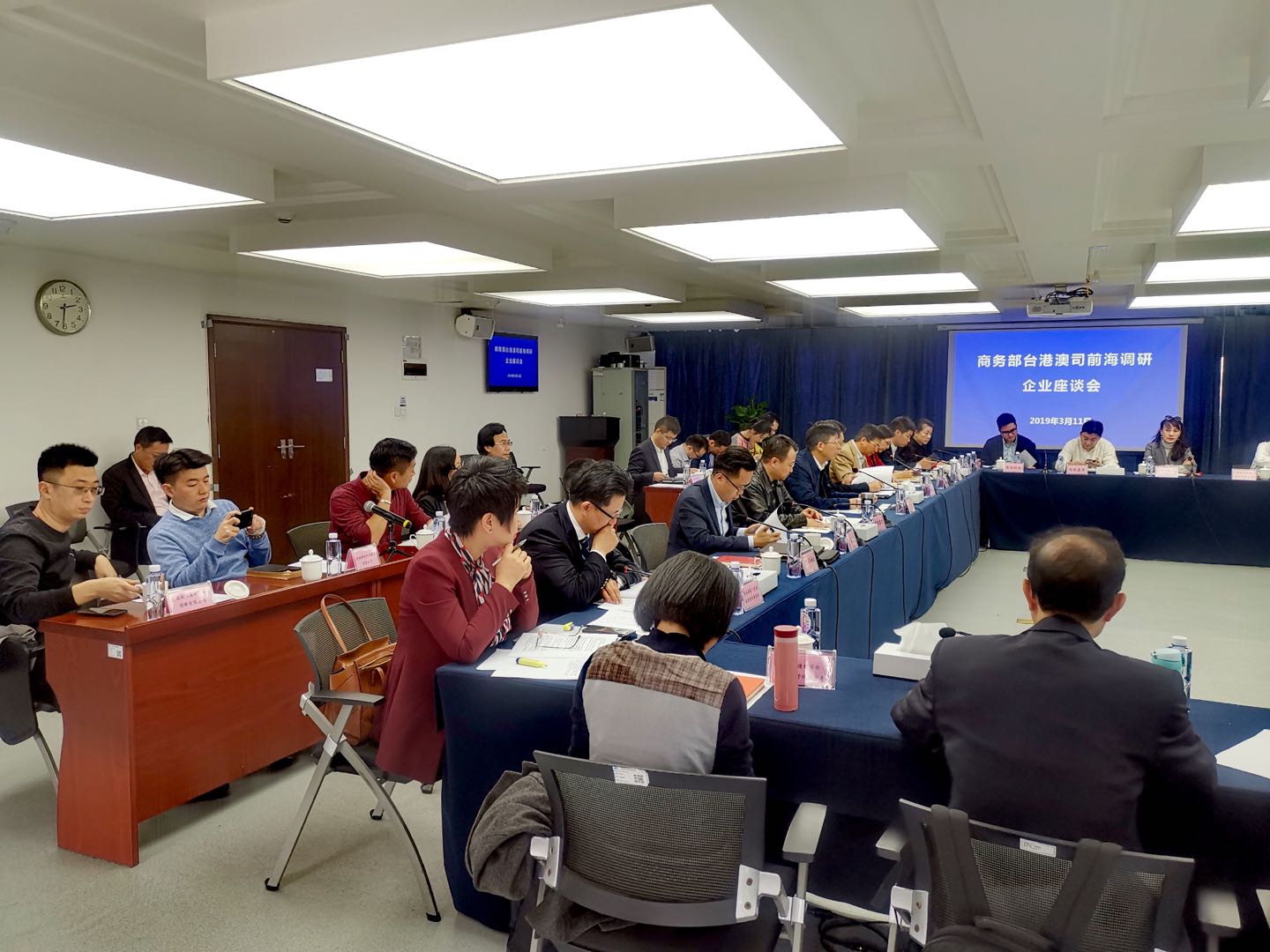 3月11日,中国商务部台港澳司司长孙彤在广东省商务厅厅长郑建荣、深圳市商务局副局长周文武、深圳市保税经济处处长姚文开、深圳市港澳办调研员苏奇志等人的陪同下,前往深圳前海深港合作区调研参观,并在前海管理局举办港企座谈会。