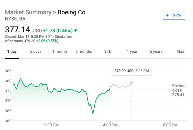 特朗普宣布停飞命令后,波音股价一度下滑超过3%。