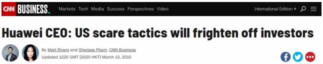 CNN:“华为CEO:美国的恐吓策略将吓跑投资者”