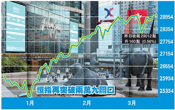 隨着市場情緒改善,風險資產獲得支持,全球股市從低位反彈,尤其是內地股市,表現非常強勁,今年來已經累積逾兩成的漲幅。香港股市則相對理性,表現反反覆覆,終於在昨日重新突破兩萬九一線,今年來累積逾一成漲幅。
