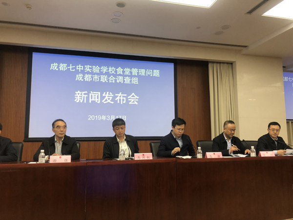 3月17日,成都市聯合調查組在成都召開新聞發布會,公布學校食堂事件調查進展。中新社