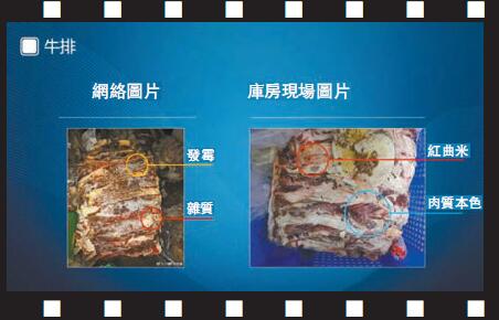 成都市市場監管局局長賀欣現場展示了肉夾饃、牛排、雞腿、魷魚、粉條等食材的部分對比照片,並公布了食堂凍庫中有人疑似製作虛假食材圖片的監控視頻和取樣的18批次食材溯源情況。