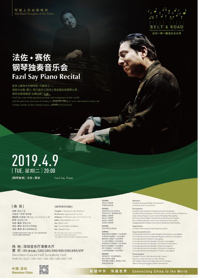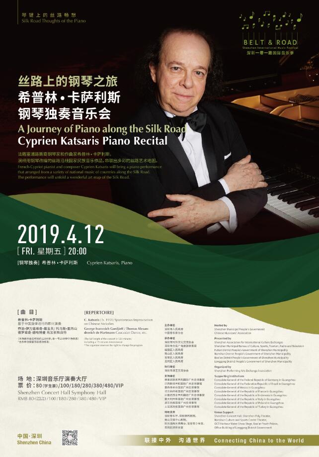 深圳是當代中國鋼琴家的搖籃,2019深圳「一帶一路」國際音樂季將專門開闢出鋼琴獨奏音樂會版塊。土耳其國寶級鋼琴奇才法佐·賽依、塞浦路斯裔法國籍鋼琴家卡薩利斯將在音樂季上舉辦鋼琴獨奏音樂會。卡薩利斯將演繹用鋼琴改編的絲路沿線國家民族音樂作品,串聯出多彩的絲路藝術地圖。