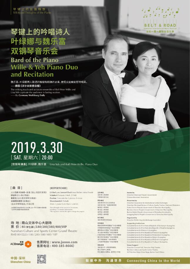 來自中國台灣的音樂伉儷葉綠娜與魏樂富則將帶來「琴鍵上的吟唱詩人——葉綠娜與魏樂富雙鋼琴音樂會」。除了雙鋼琴、四手聯彈,一首鋼琴與朗誦的敘事詩《荒野的男孩》,將鋼琴的各種多元演出形式精彩呈現。