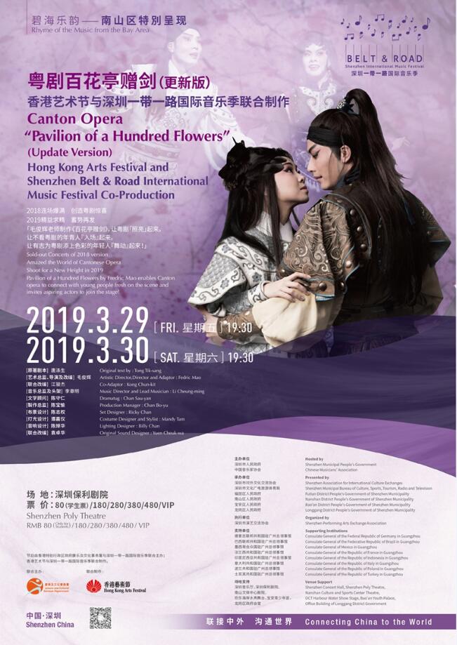 第47屆香港藝術節將於3月23日落幕。為實現與香港藝術節的優勢互補、資源共享和節目置換,香港藝術節與深圳「一帶一路」國際音樂季聯合製作粵劇《百花亭贈劍》將於3月29日、3月30日在深圳保利劇院上演。