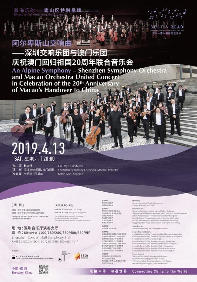 今年是澳門回歸20周年,繼第一屆音樂季後,澳門樂團攜手深交組成聯合樂隊,參加第三屆深圳「一帶一路」國際音樂季,聯袂演出《阿爾卑斯山交響曲》音樂會,奏響深澳藝術交流與合作新樂章。