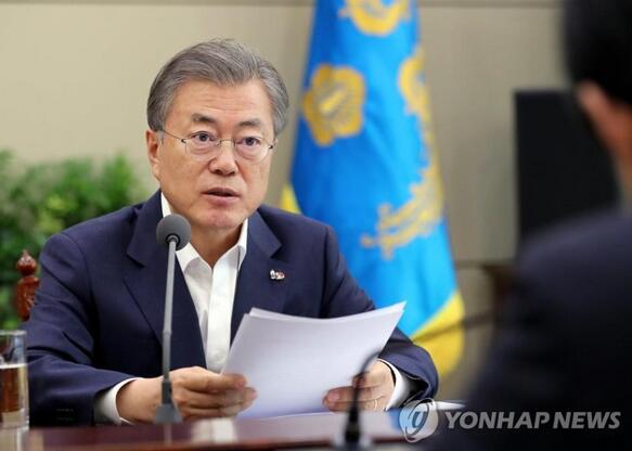 文在寅在首尔总统府青瓦台接受司法部长和内政部长的简报后下达指示。(图源:韩联社)