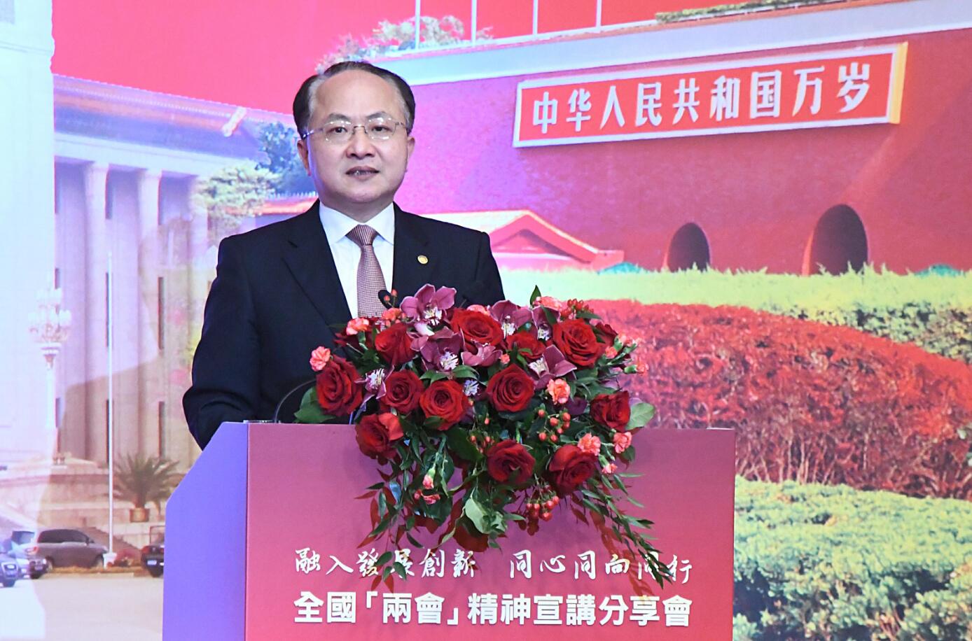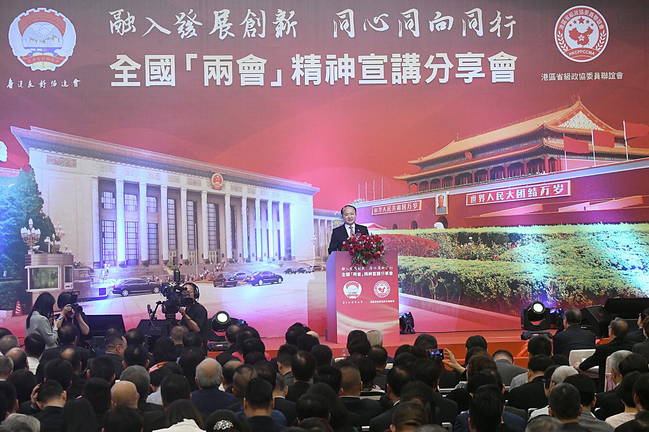 全國兩會精神宣講分享會昨午在港舉辦,中聯辦主任王志民出席分享會並作主題演講。 記者 馮瀚文攝