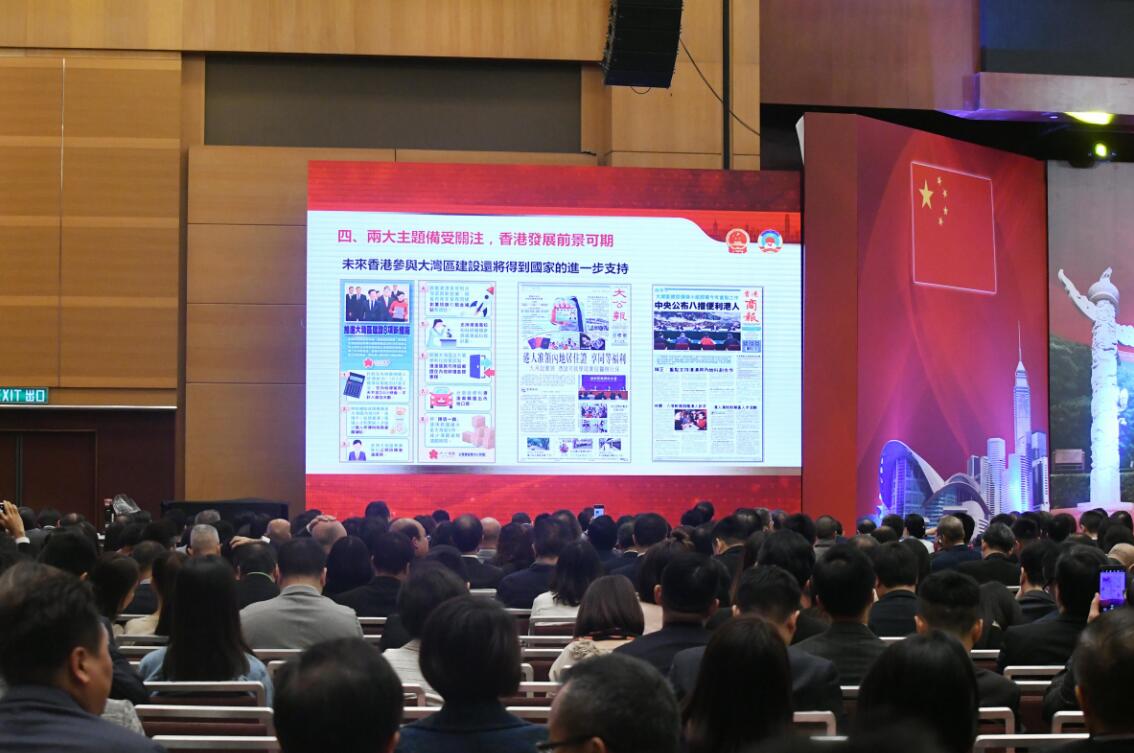 昨日分享會上,王志民還引用商報版面為例,講述了兩會期間香港代表及委員們高度關注的粵港澳大灣區建設,並表示香港參與大灣區建設還將得到國家進一步支持,香港發展前景可期。