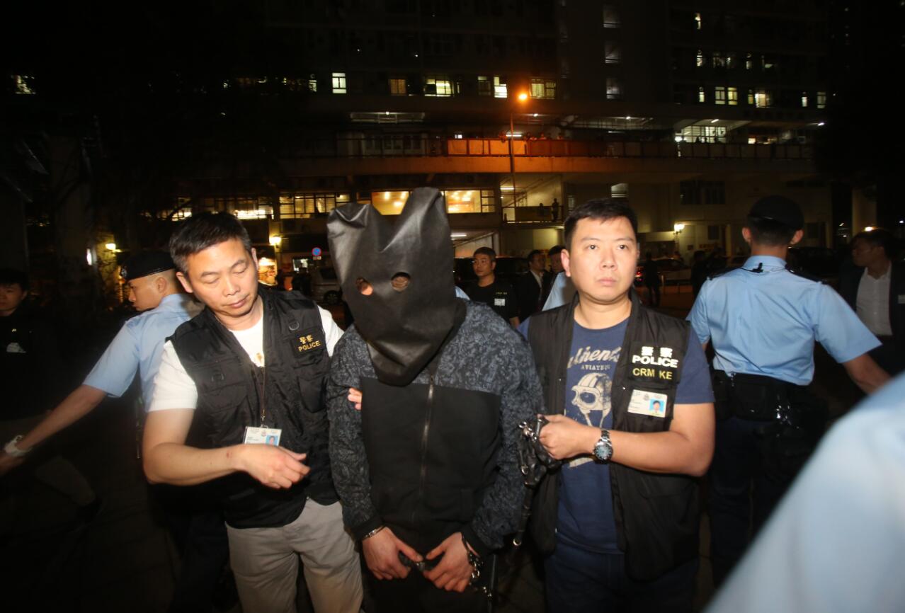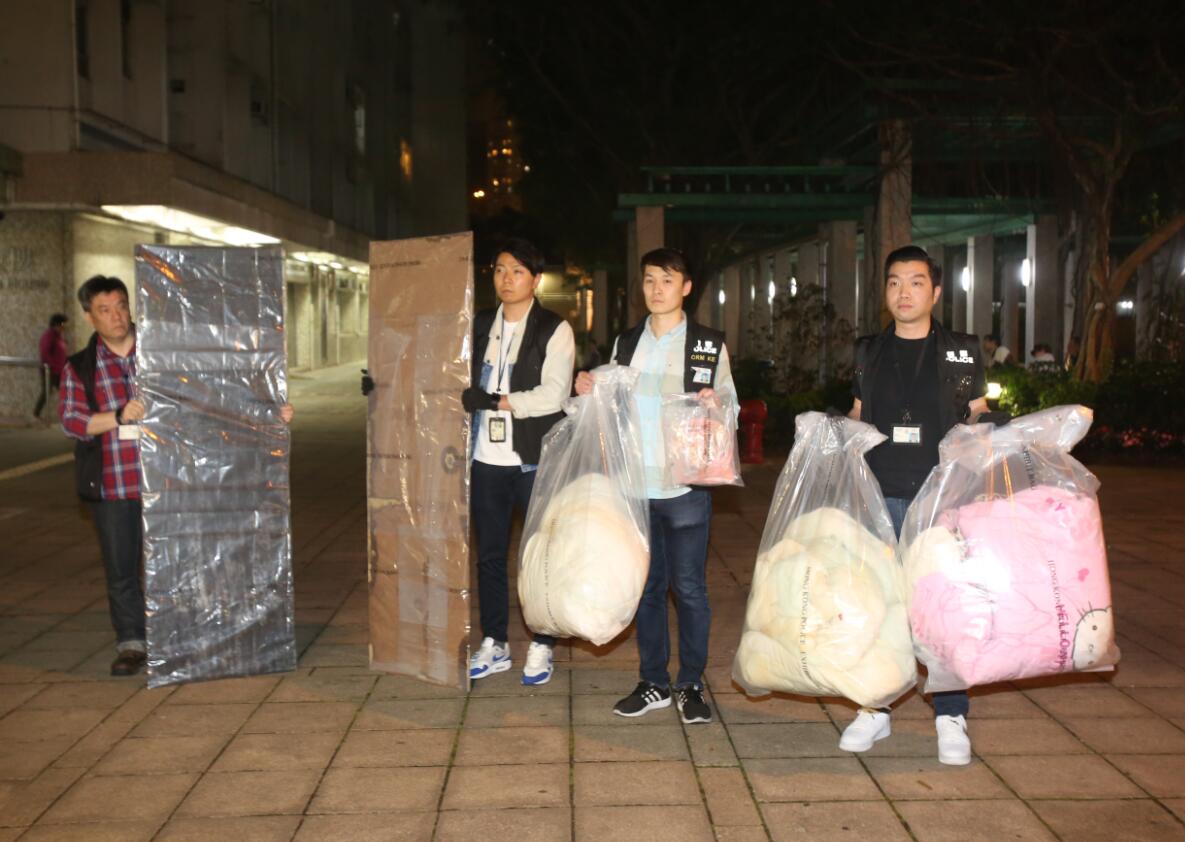 至昨晚,疑犯被黑布蒙頭、鎖上手銬,由警員包圍下,押返寶林邨現場重組案情,然後再被押返警署通宵扣查,警方人員又在案發單位內檢走一批證物。