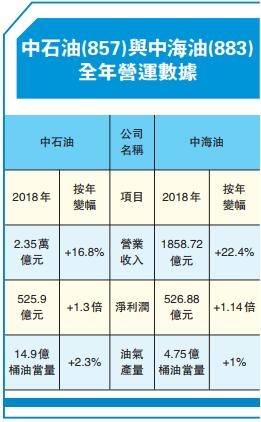 首先在純利上,中石油去年股東應佔淨利潤為525.91億元,按年升1.3倍;而中海油淨利潤則按年勁升1.14倍至526.88億元,升幅上較為接近。不過,中石油今年擬派末期息每股6.271分,另派特別息每股2.729分,共派息9分,但中海油則只派末期息0.4港元,沒有特別息分派。