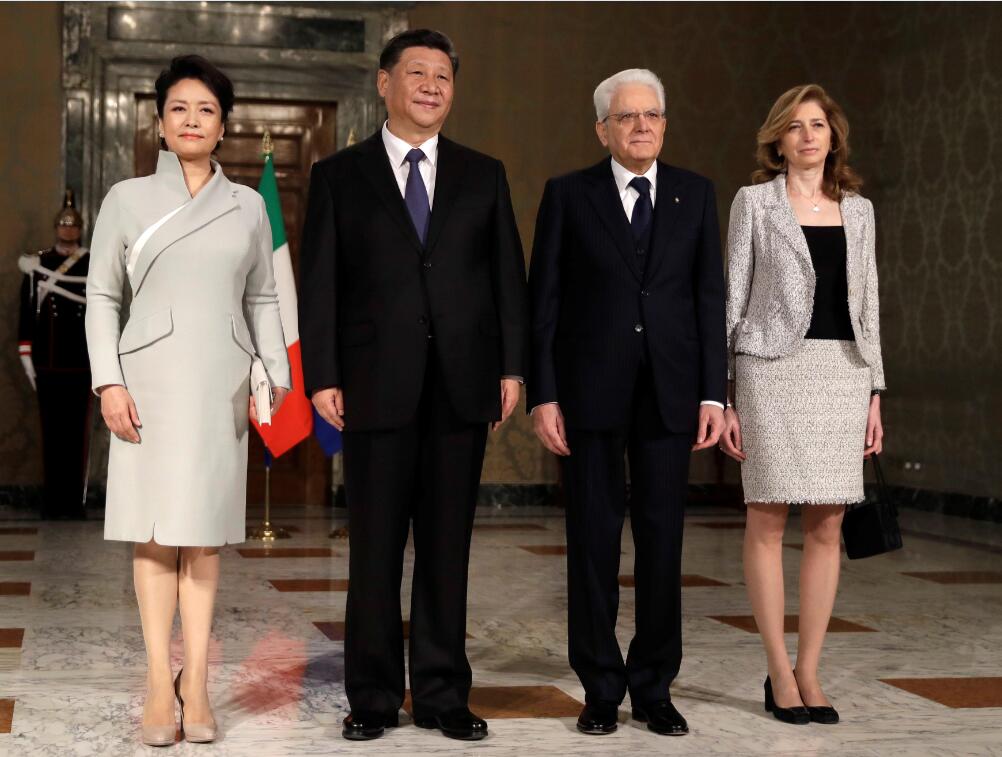 中國國家主席習近平於當地時間21日抵達羅馬,對意大利進行國事訪問。當習近平乘坐的專機進入意大利領空時,2架意大利空軍戰機升空護航。當地時間晚6時30分許,專機抵達羅馬菲烏米奇諾機場。習近平和夫人彭麗媛步出艙門,意大利農業旅遊部部長等高級官員在舷梯旁熱情迎接。