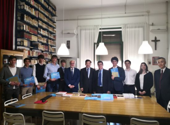 当地时间3月22日,中央广播电视总台向罗马国立住读学校师生赠送了《如果国宝会说话》、《你好,中国》等十余套中国优秀精品影视节目,以及部分中文书籍。