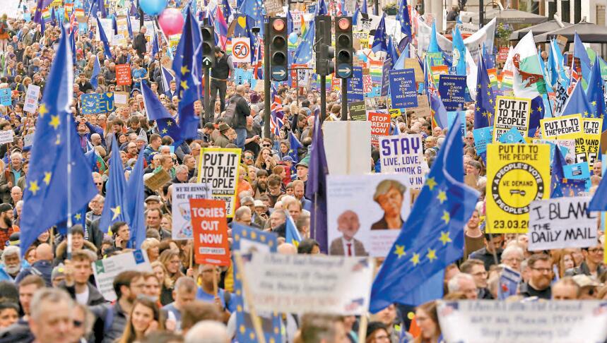 此前一天,超過一百萬民眾在倫敦市中心舉行示威遊行,反對英國脫歐,呼籲就是否脫歐舉行第二次公投。