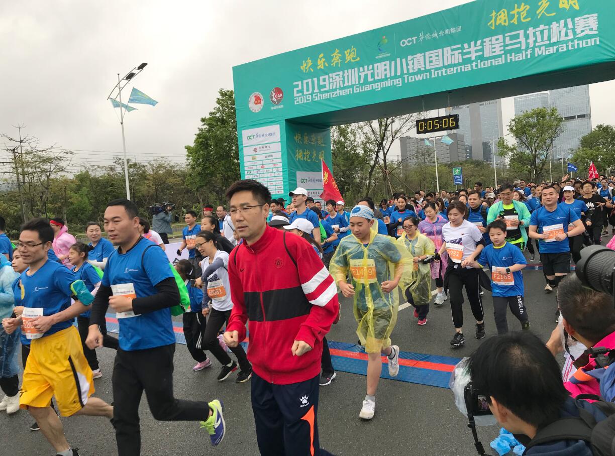 【香港商報網訊】記者黃鳳鳴報道:微雨習習,卻擋不住馬拉松跑者的熱情。3月24日8:00,2019深圳光明小鎮國際半程馬拉松賽鳴槍開賽。此次比賽是光明區首屆 " 半馬 ",由中國田徑協會、光明區人民政府主辦,光明區文化廣電旅遊體育局承辦,深圳市五環體育產業發展有限公司負責賽事推廣運營。賽事參賽規模達到8000人,其中半程馬拉松2000人、微型馬拉松3000人、嘉年華歡樂跑3000人。