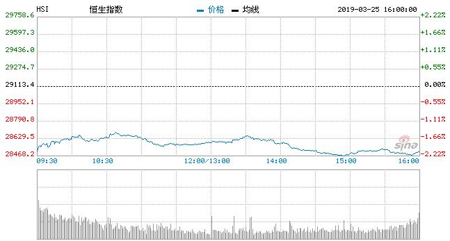 【香港商报网讯】3月25日消息,欧美经济数据不佳,市场担忧全球经济放缓,道指大挫460点,拖累港股ADR比例指数大跌489点,今日开盘,港股恒生指数低开2.1%,随后在28523点上下波动。截至收盘,恒生指数跌2.03%,报28523.35点;国企指数跌2.48%,报11232.07点;红筹指数跌1.52%,报4477.20点。